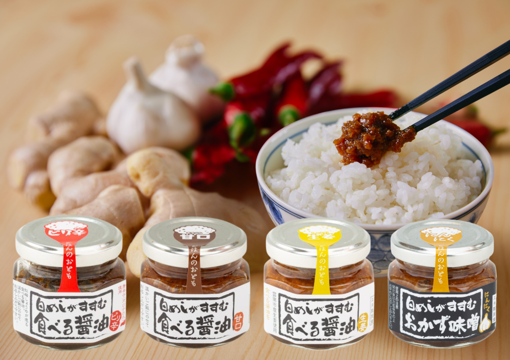 白めしがすすむ食べる醤油 甘口・ピリ辛・生姜・にんにく